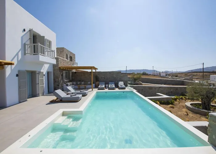 Situata a 3 km dal Quartiere di Little Venice, la Summer Breeze Luxury Villa Mykonos Panormos offre una terrazza con vista sulle montagne. Offrendo una vista una piscina privata, questa villa con 4 camere da letto invita gli ospiti a visitare la Casa di Lena, situata a circa 10 minuti in macchina.